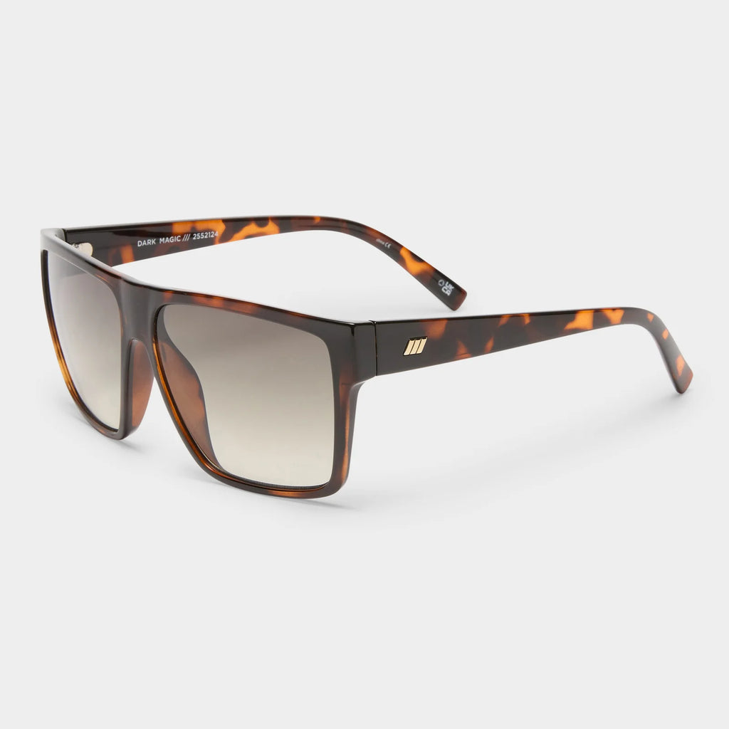 Give a bold and confident look with our DARK MAGIC d frame sunglasses. Featuring a bold and flat brow bar and classic Le Specs flagstripe pin badge, these frames offer a large and comfortable fit.